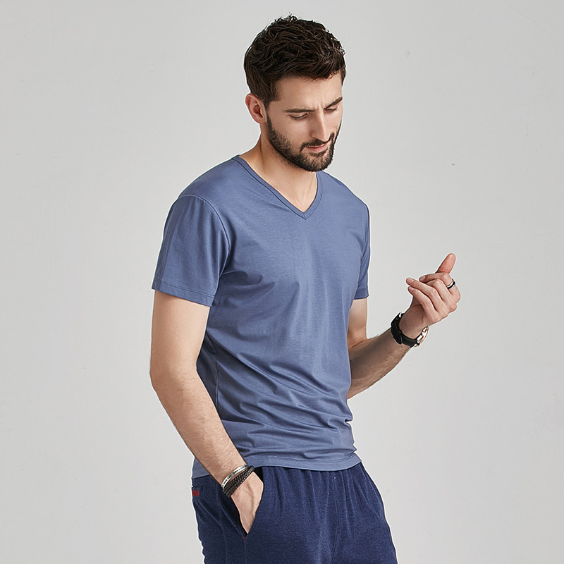 莫代尔棉短袖t恤男士夏季v领衣服潮流半袖丅潮牌冰丝体恤衫(图10)