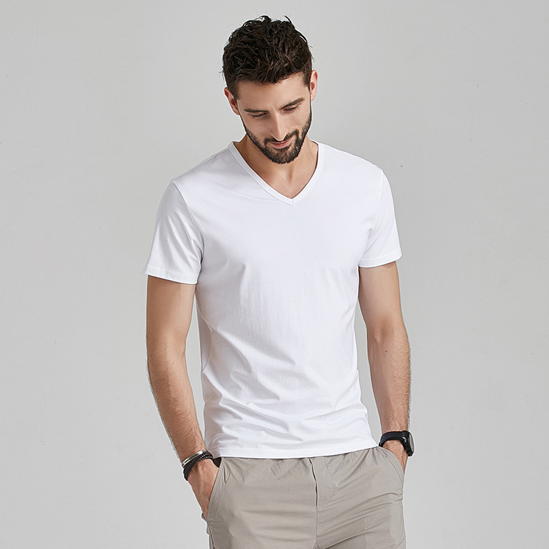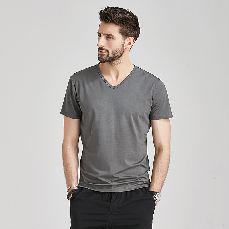 莫代尔棉短袖t恤男士夏季v领衣服潮流半袖丅潮牌冰丝体恤衫(图19)