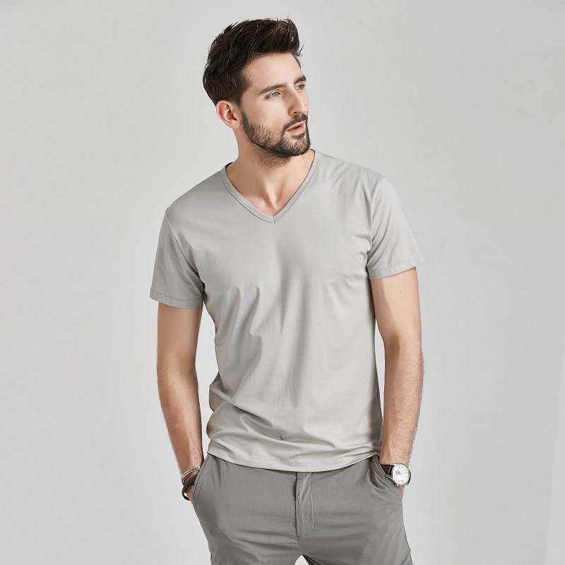 莫代尔棉短袖t恤男士夏季v领衣服潮流半袖丅潮牌冰丝体恤衫(图17)