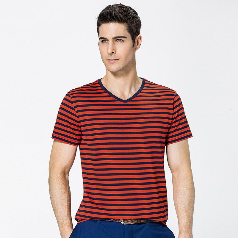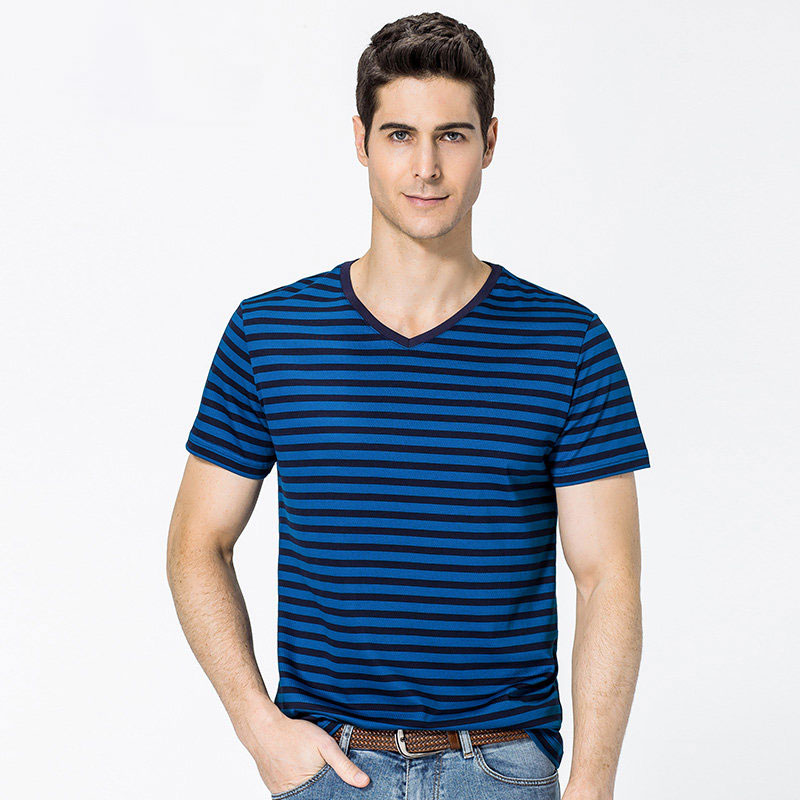 t恤男短袖V领条纹体恤新款夏季中年半袖男休闲爸爸装打底衫(图10)