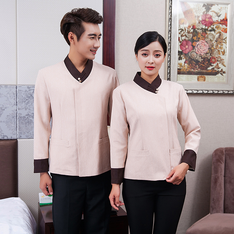 定做秋冬款保洁物业公司清洁工衣服长袖五星级大酒店客房服务员制(图1)