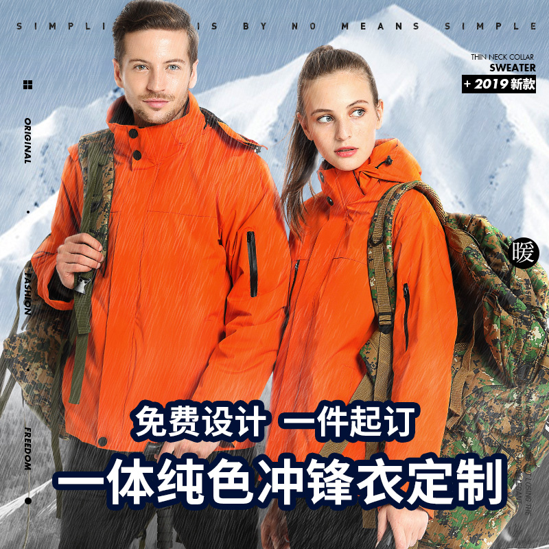 户外旅游冲锋衣定制工作服防风防雨加绒登山服外套定做刺绣印logo(图1)