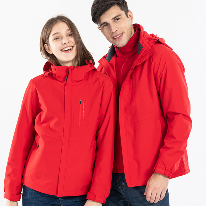 秋冬爆款情侣三合一冲锋衣男防风防水两件套户外服女团购定制印标(图2)