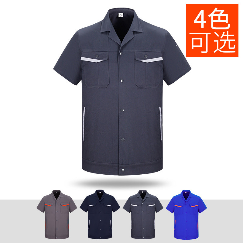 夏季短袖工作服套装男 纯棉夏天薄款吸汗透气工厂车间劳保服上衣(图17)