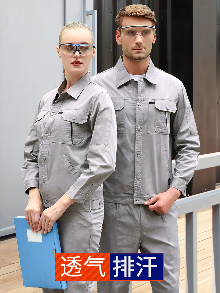 夏季纯棉工作服套装男 全棉夏天薄款耐磨透气工厂车间劳保服上衣(图4)