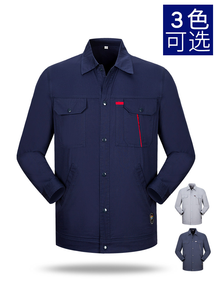 夏季纯棉工作服套装男 全棉夏天薄款耐磨透气工厂车间劳保服上衣(图3)