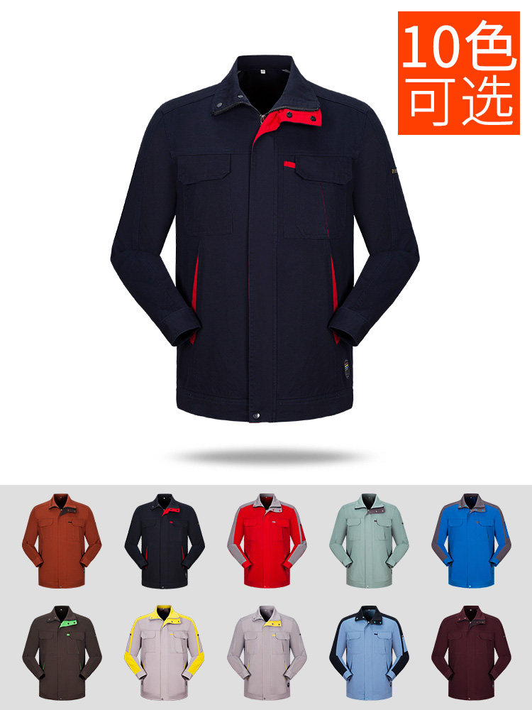 纯棉工作服套装男长袖春秋工厂车间宽松大码加厚全棉劳保服上衣(图1)