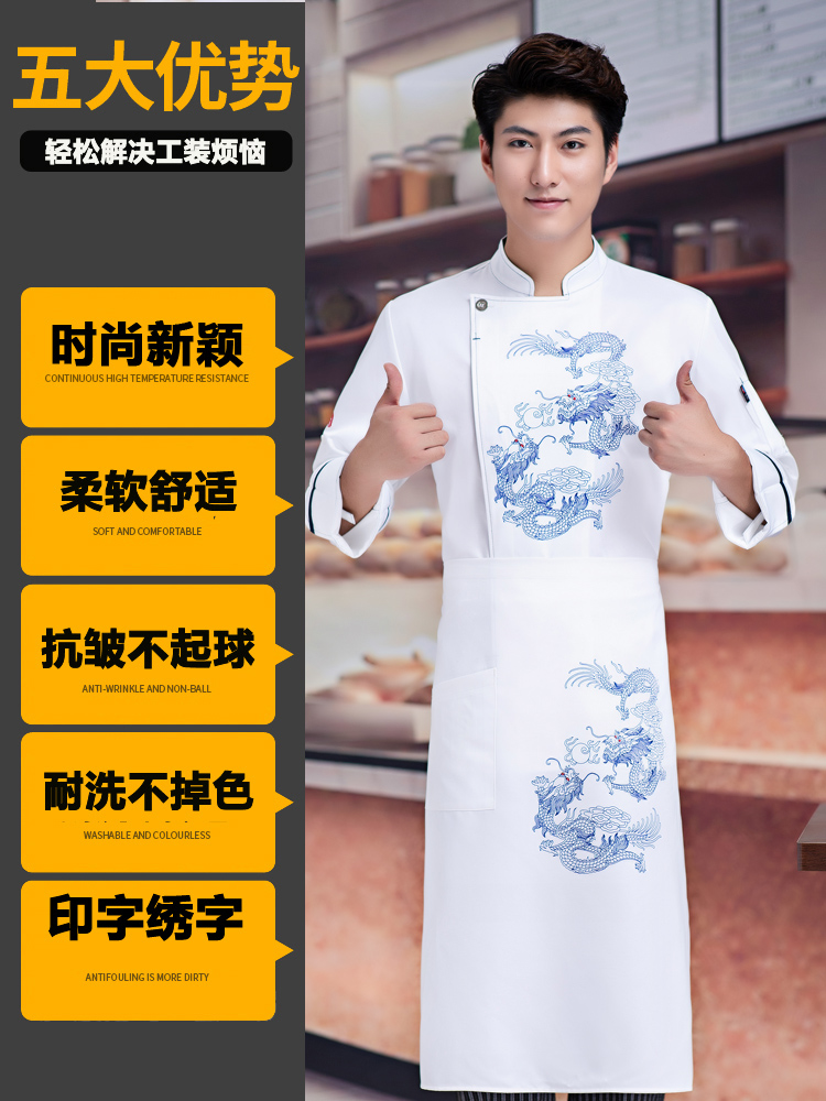 厨师服工作服男长袖大码星级酒店西餐厅糕点师厨师服定制秋冬定制(图1)