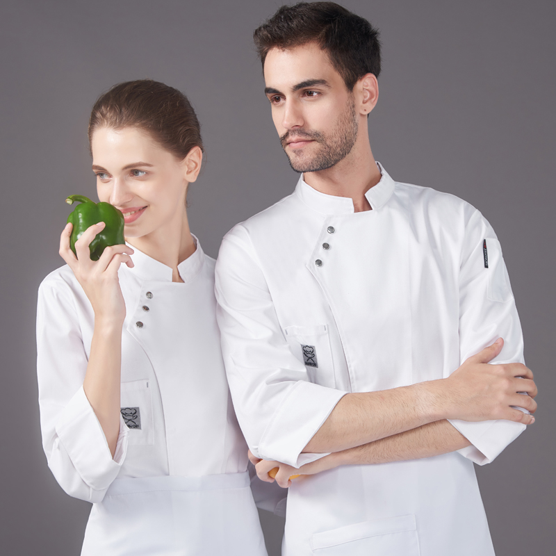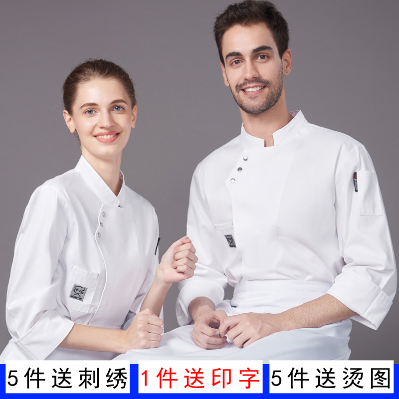 酒店纯白全棉饭店餐厅厨师工作制服长袖秋冬厨房面点烘焙后厨男女(图1)