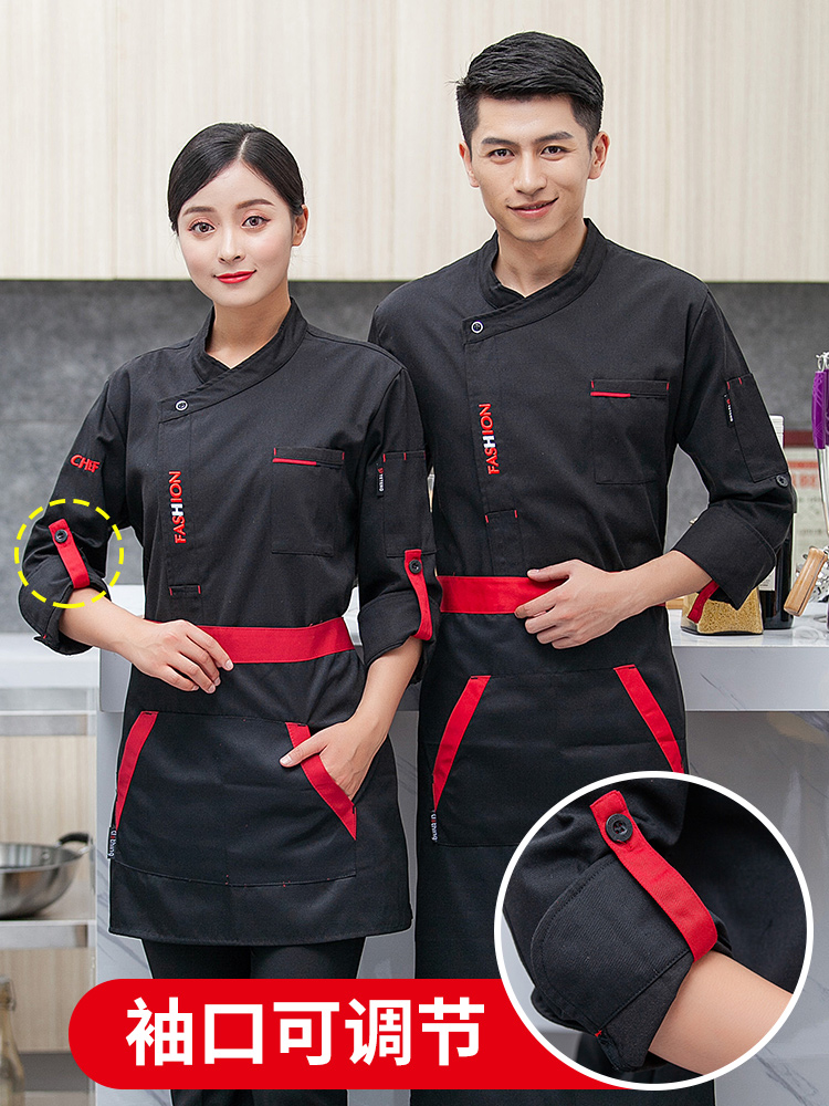 厨师工作服男长袖潮流厨衣定制西餐酒店厨房厨师服短袖夏季七分袖(图12)
