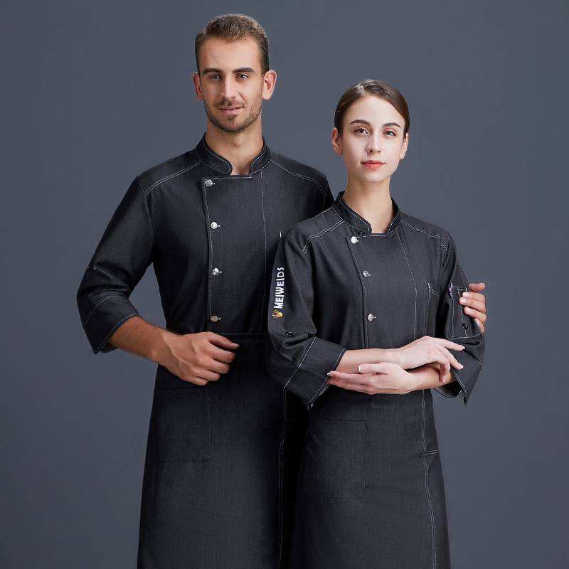 餐厅厨师工作服男长袖餐饮店厨师长总厨高端牛仔秋冬季厨师服定做(图11)