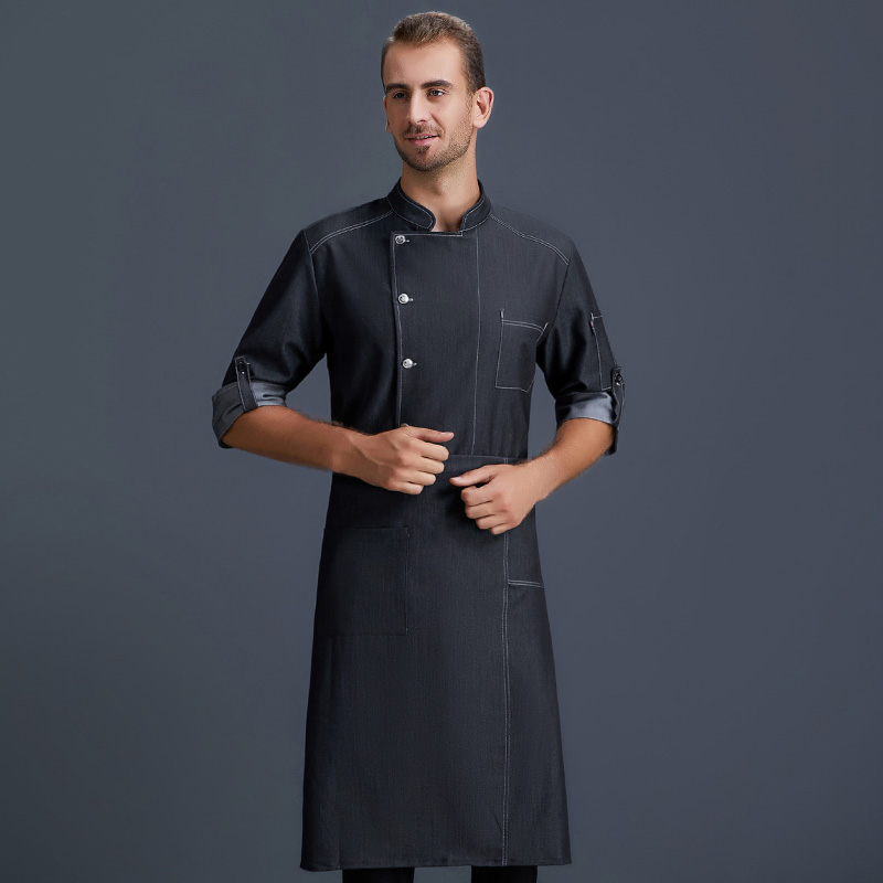 餐厅厨师工作服男长袖餐饮店厨师长总厨高端牛仔秋冬季厨师服定做(图5)