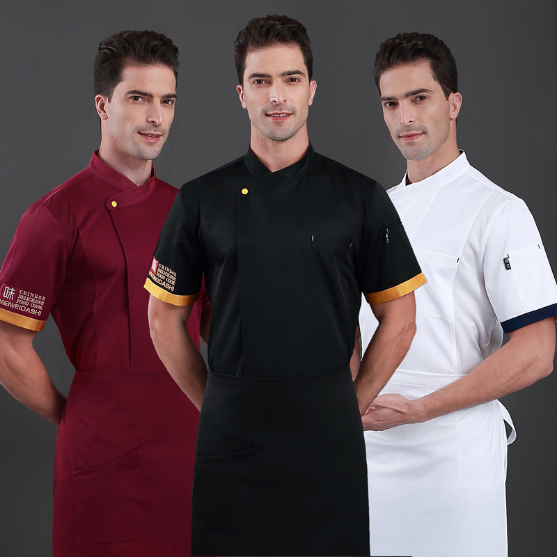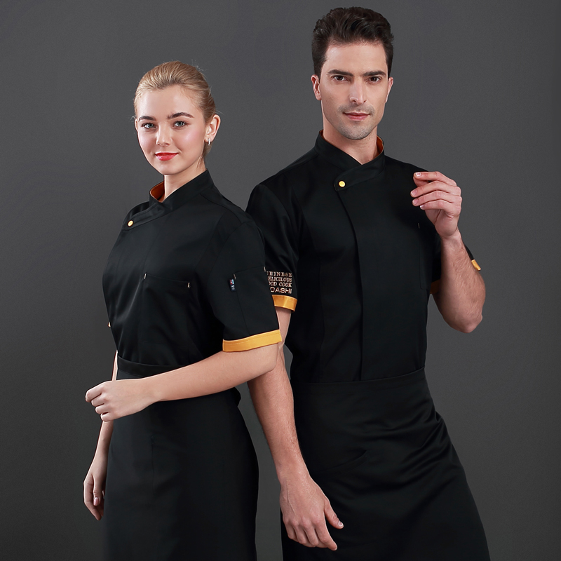 厨师工作服男短袖夏季透气薄款黑色棉酒店餐厅烘焙后厨房工衣定制(图3)