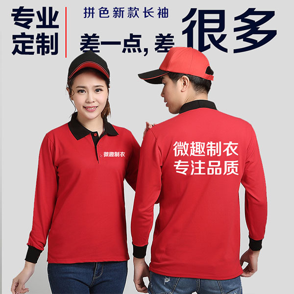 定制工作服t恤翻领长袖POLO衫印字logo订做同学聚会工衣文化广告(图4)