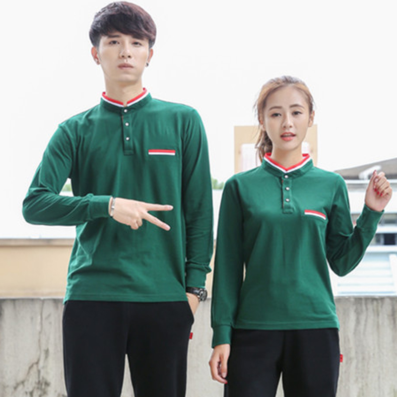 2019秋季工作服长袖t恤立领POLO衫男女工装团体服定制diy印字logo(图1)