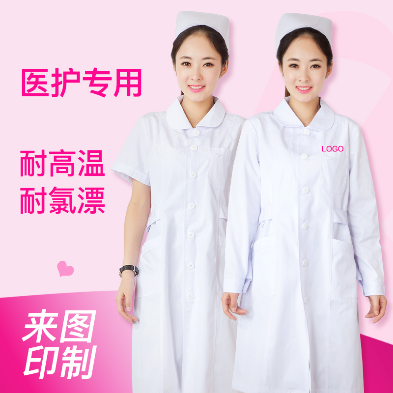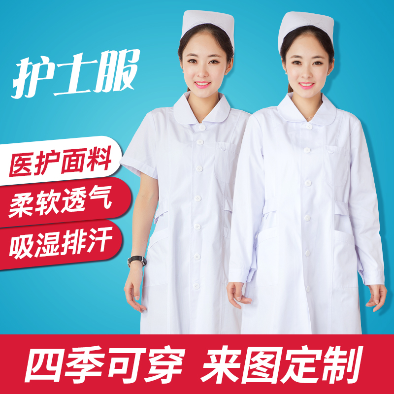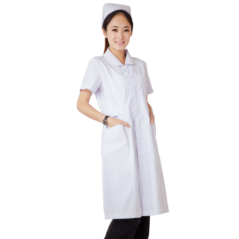 白大褂女长袖护士服白大衣医生短袖薄款半袖药店医用工作服长款(图1)