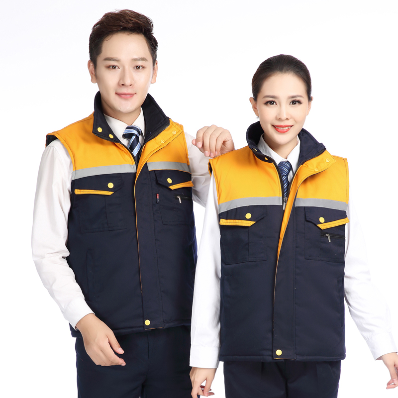 冬季建筑工地工人工厂仓储反光条背心男女环卫工程保暖棉马甲(图29)