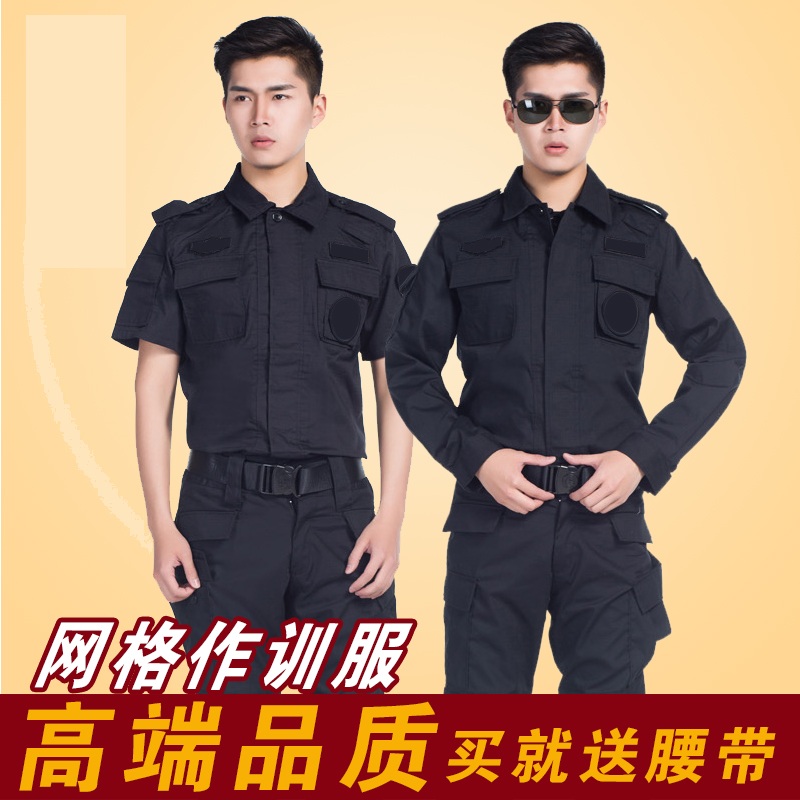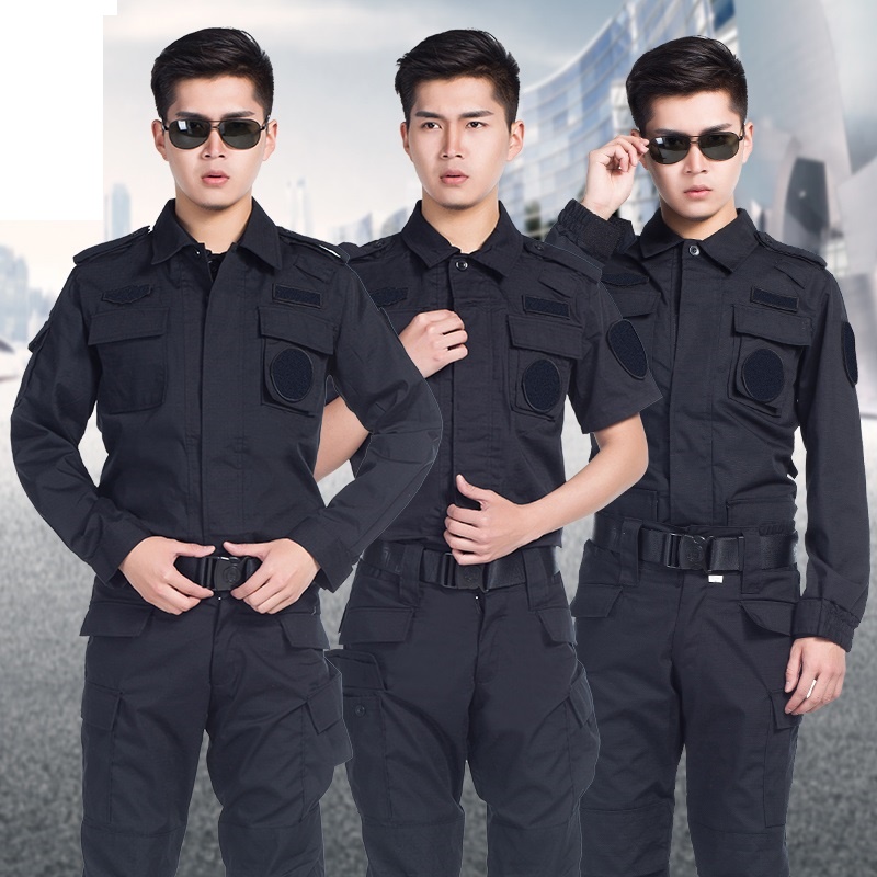 保安黑色作战服作训服物业长袖安检保安训练服野战服套装工作服(图3)