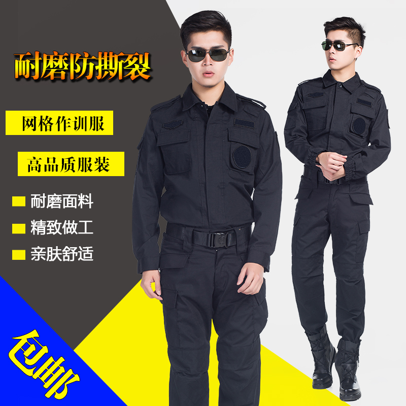 保安黑色作战服作训服物业长袖安检保安训练服野战服套装工作服(图1)
