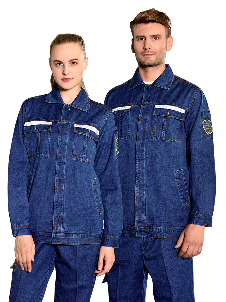 牛仔工作服套装男 春秋纯棉工厂车间防静电电工焊加厚劳保服(图4)