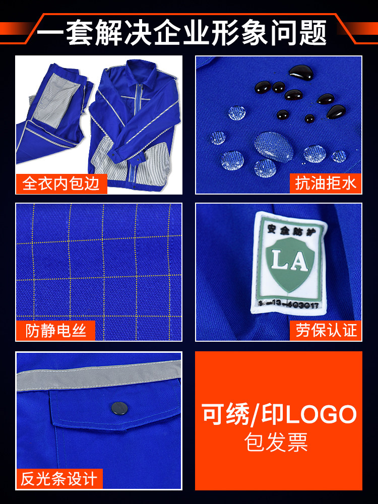 春秋防静电工作服套装男电工加气加油站防油防水反光条劳保服(图4)