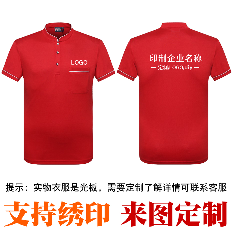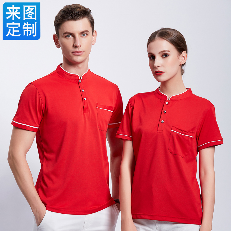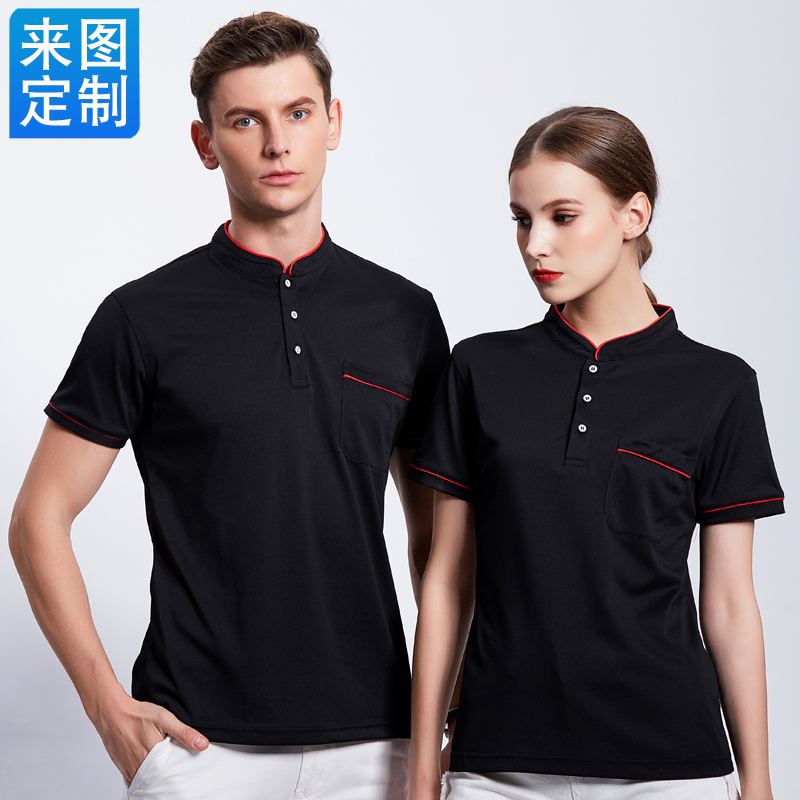 时尚酒店服务员工作服立领T恤定制咖啡厅餐饮短袖工装夏装polo衫(图1)