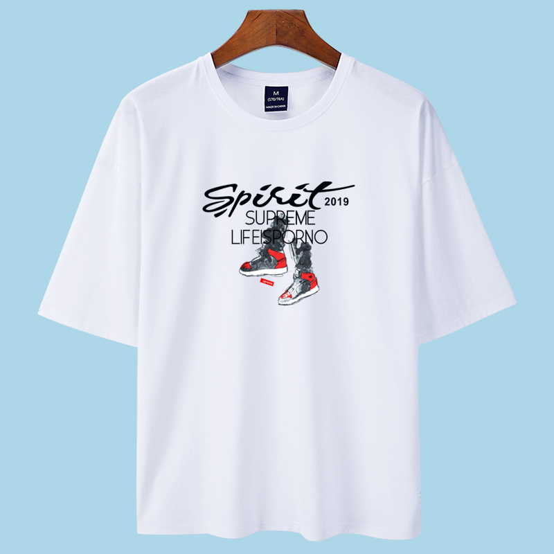 短袖t恤男中袖五分袖5分袖半袖半截袖潮流宽松学生白色纯棉夏装丅(图19)