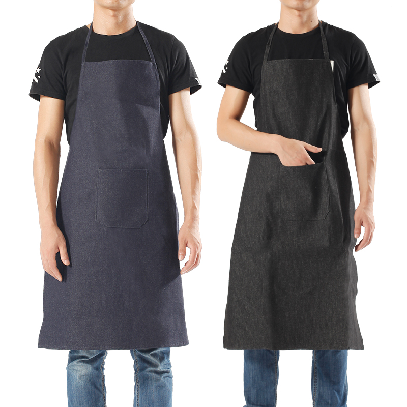 帆布牛仔布料围裙韩版时尚厨房l加厚ogo定制劳保工业工作围裙男女(图4)