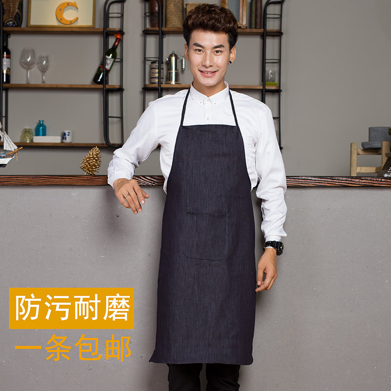 帆布牛仔布料围裙韩版时尚厨房l加厚ogo定制劳保工业工作围裙男女(图1)