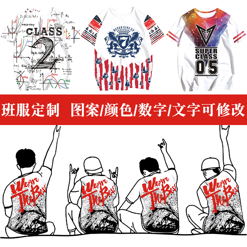 毕业班服定制t恤diy衣服装文化衫订做夏季全身印中五分袖短袖印字(图12)
