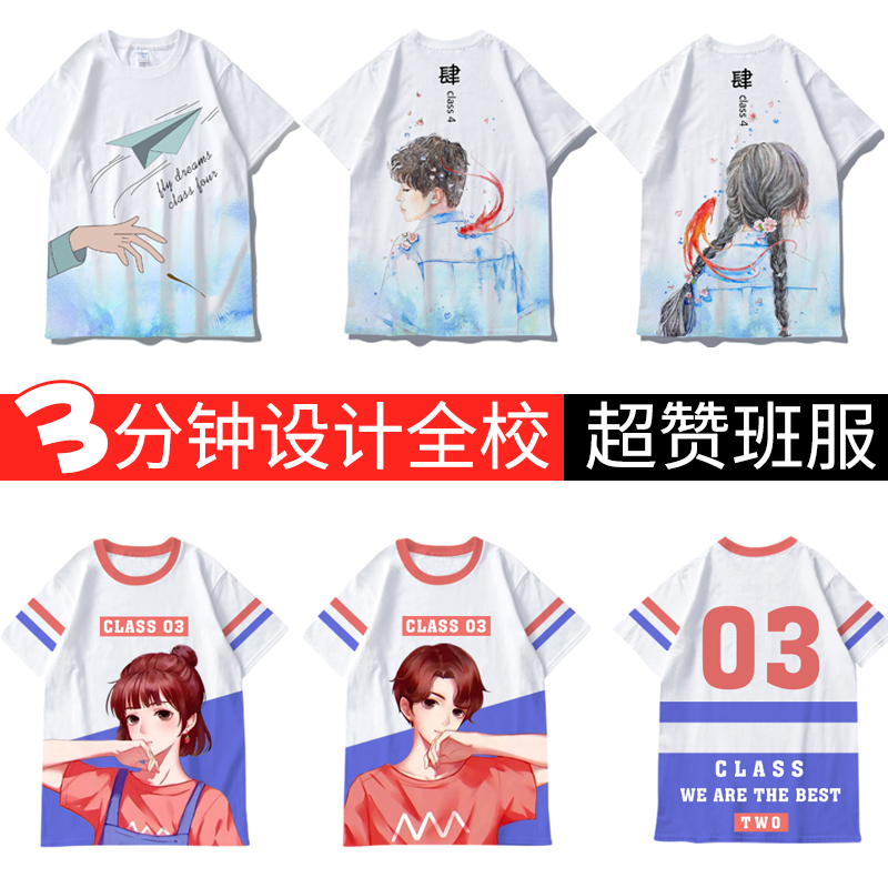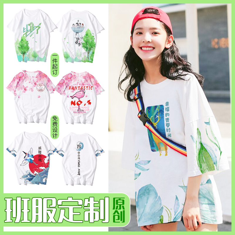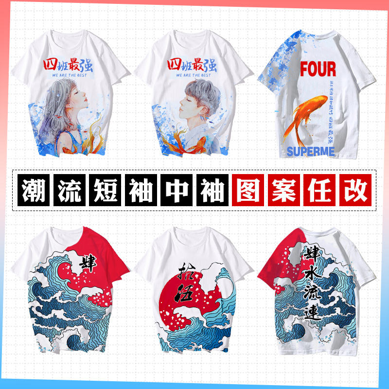 全身印班服定制t恤短袖夏季学生运动会diy字图高中生衣服ins港风(图1)