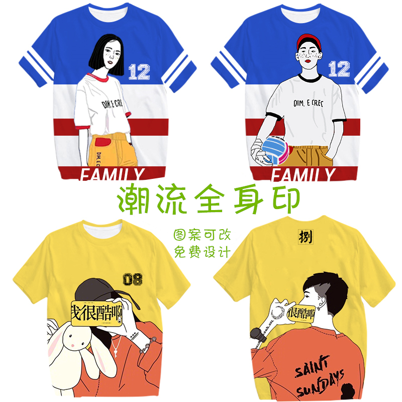 全身印班服定制t恤短袖夏季学生运动会diy字图高中生衣服ins港风(图7)