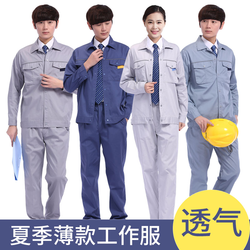夏季长袖工作服套装薄款工程汽修物流加工车间劳保服透气耐磨纯棉(图1)