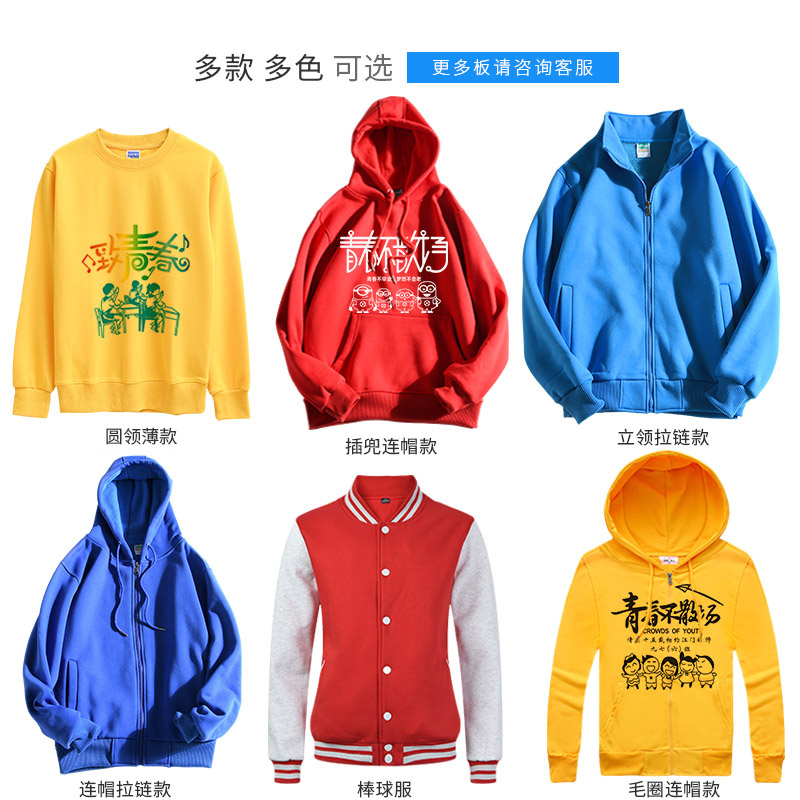 卫衣定制班服外套纯棉连帽加绒棒球服diy印logo字订制长袖工作服(图17)
