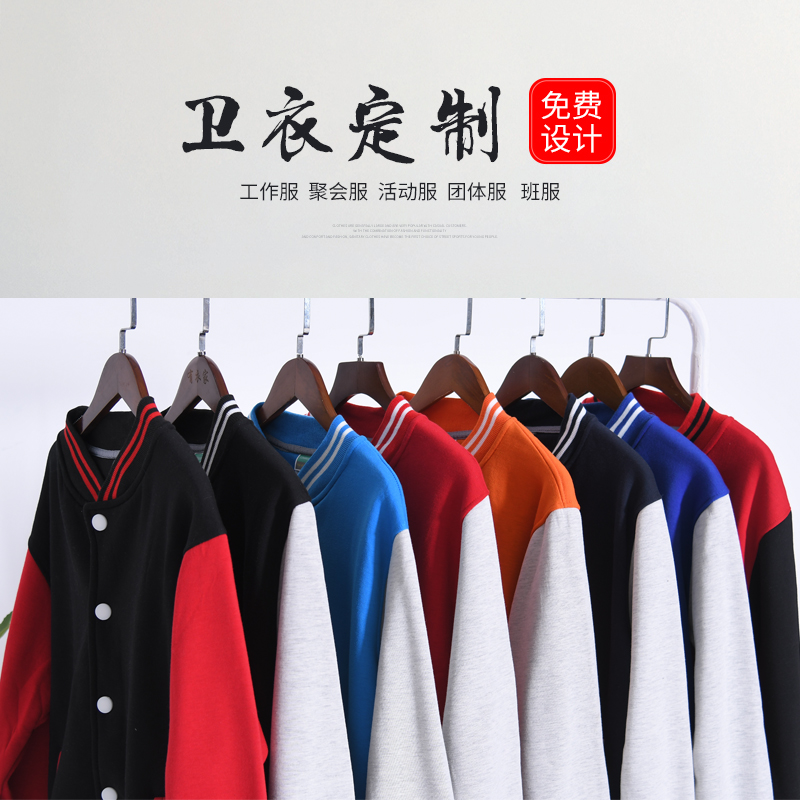 卫衣定制班服外套纯棉连帽加绒棒球服diy印logo字订制长袖工作服(图8)