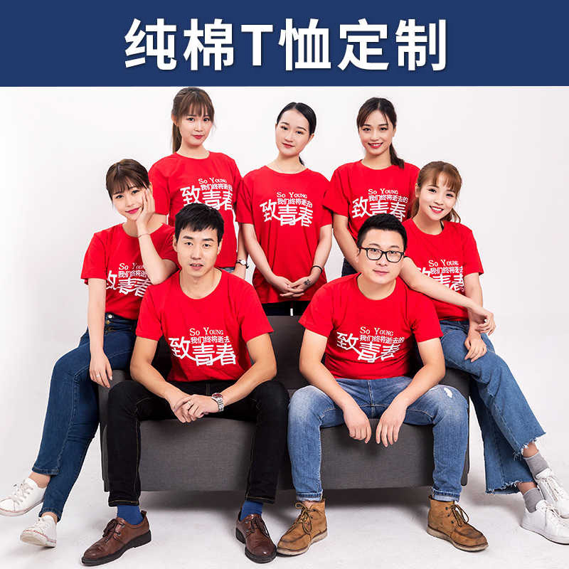 定制T恤印logo纯棉短袖工作服同学聚会衣服文化衫订制diy工衣旅游(图1)