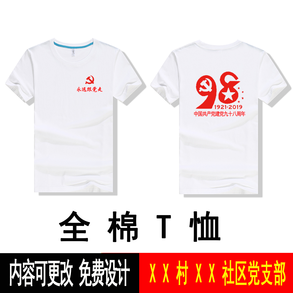 爱国T恤定制党员活动文化衫五四共青团短袖五一红歌大合唱团体服(图1)